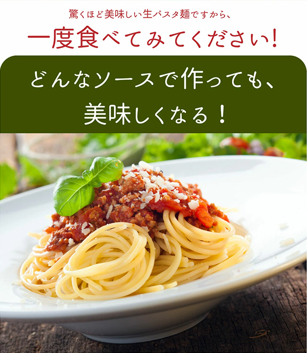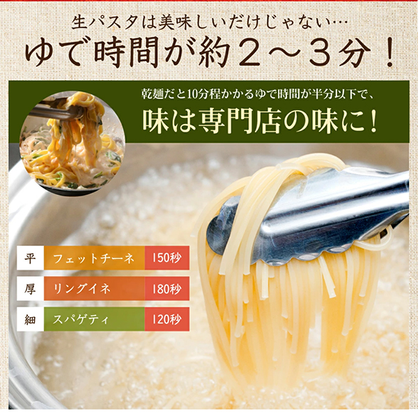 いつものパスタを生パスタに変えるだけで簡単に専門店の味が完成します。