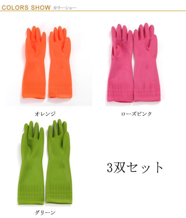 キッチングローブ ゴム手袋 3双セット 園芸 洗浄用 食器洗い 滑り止め 洗車用 ロング 洗濯用 強靭性 ペットケア 塗装用 多用途 滑り止め 防水