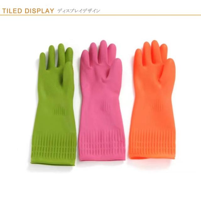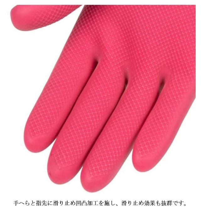 | 3双セット 手荒れを防止!水仕事の必需なグローブです。 肘下までの38センチのロングタイプで、水が入りにくくなっています。 靭性が良くて、引き裂きに強く、耐久性に非常に優れた家事用ゴム手袋。 手へらと指先に滑り止め凹凸加工を施し、滑り止め効果も抜群です。 袖口は伸縮性があるので、作業中の脱落を防止します。 | |
