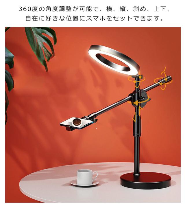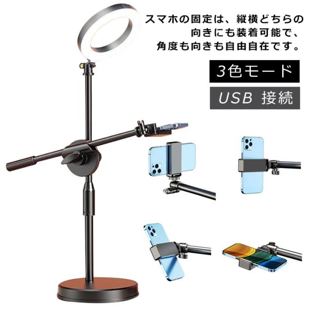 俯瞰撮影 LEDリングライト 真上から撮影 オンラインレッスン 伸縮 3色モード LEDリングライト スマホ 動画撮影 料理動画 撮影照明用 手元を映す アート お料理 ライブ配信 手元撮影 USB スマホスタンド