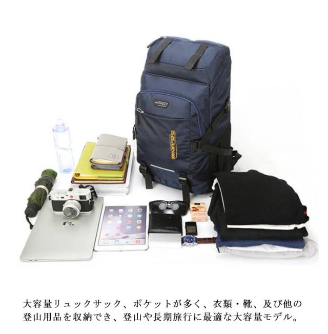 | 60L撥水加工大容量アウトドアリュックサック。 大容量リュックサック、ポケットが多く、衣類・靴、及び他の登山用品を収納でき、登山や長期旅行に最適な大容量モデル。 メッシュには滑り止め効果のある素材を使用しており、背負う過程で肩に発生する空滑り現象を防止します。 背面の快適さを保証することを前提として、最大限の透湿性と摩擦耐性効果を保証します。 アウトドアや登山、旅行用だけでなく、通勤通学などにも使える大容量リュックです! 軽量なので女性でも安心です。 | |