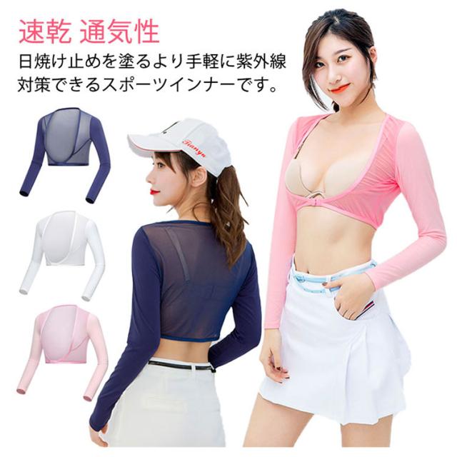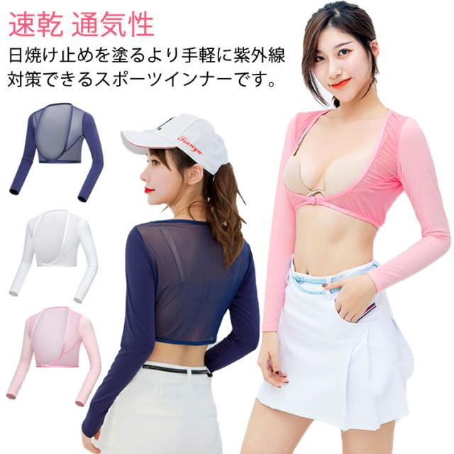 UVカット アームカバー 夏物 ゴルフウェア 日焼け対策 長袖 冷感 レディース 女性用 スポーツシャツ 運動 ひんやり アウトドア お洒落 通気性 ゴルフインナー