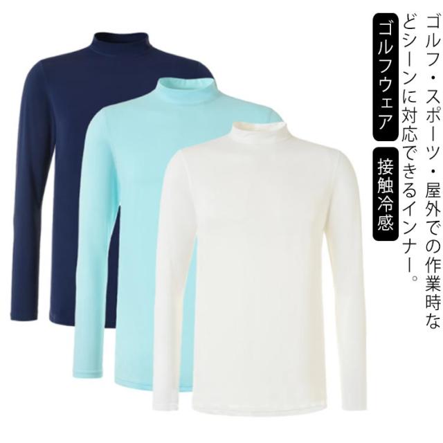 長袖 熱中症対策 ゴルフウェア メンズ インナー ハイネック UVカット 日焼け対策 熱中症対策 接触冷感 吸汗速乾 スポーツ ジム ランニング 自転車 アウトドア 大きいサイズ ストレッチ性