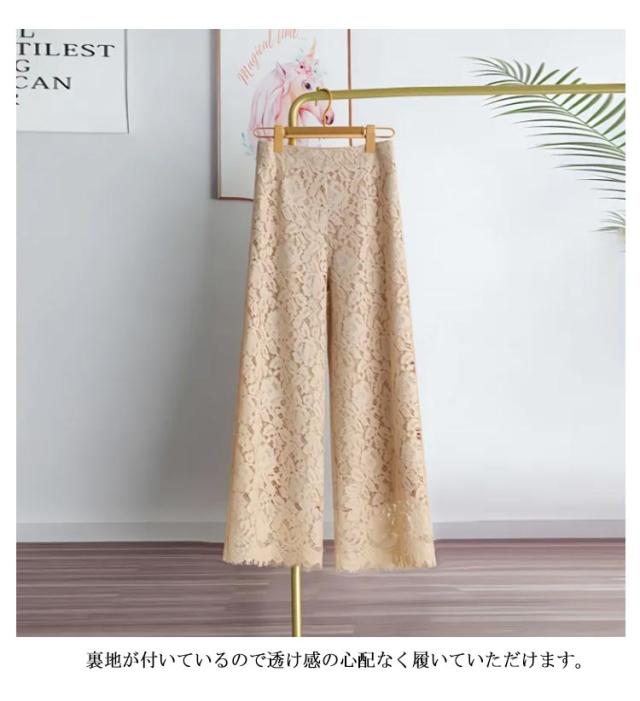 レースパンツ 花柄レース レディース フレアパンツ ワイド ワイドパンツ 裏地付き 総レース ロングパンツ 長ズボン ボトムス 大きいサイズ 9分丈パンツ エレガント ゆったり 体型カバー きれいめ オシャレ 春服 かわいい おしゃれ カジュアル 春 夏 大きいサイズ