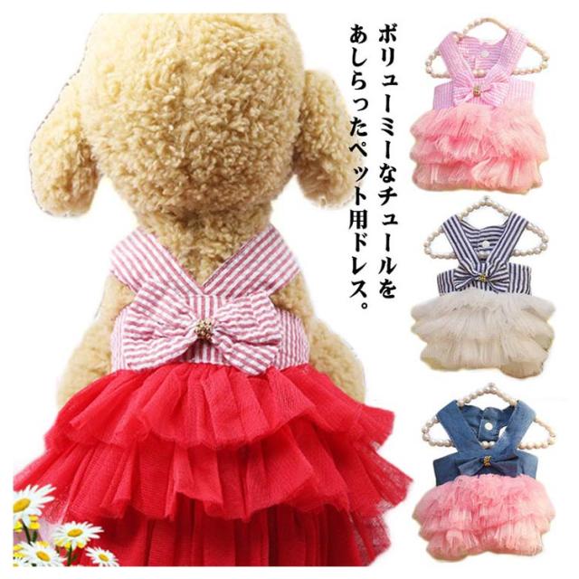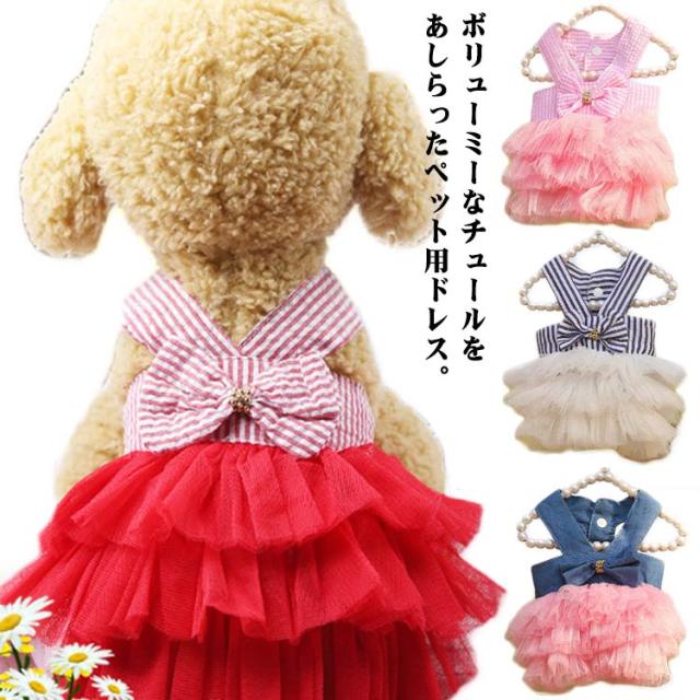 猫 キャミソールワンピ 犬 犬服 犬の服 キャットウェア ワンピース チュール リボン ペット服 猫の服 ノースリーブ ドレス 洋服 猫服 ペットウェア ドッグウェア お散歩 お出かけ 春夏 犬