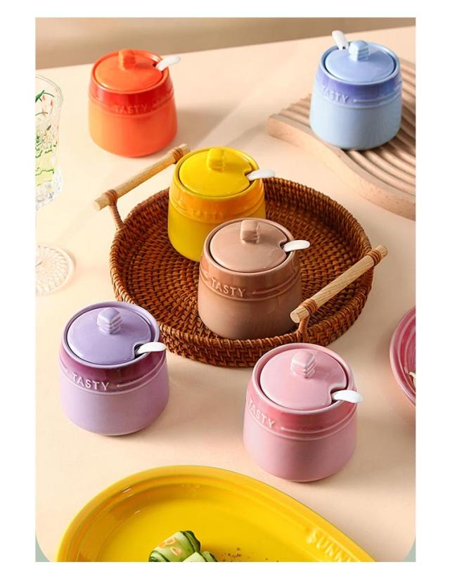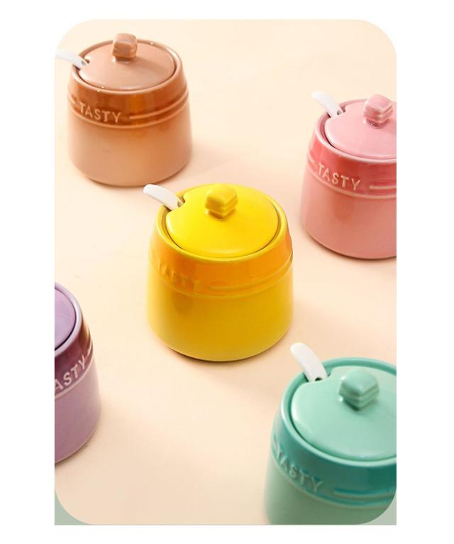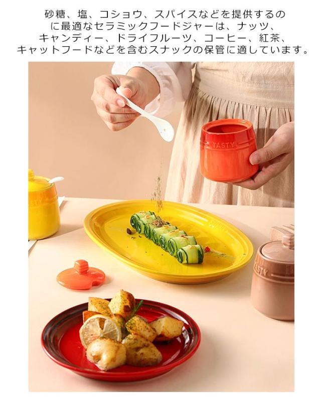 調味料入れ スプーン付き 台所 母の日 ふた付き セラミック 保存容器 シュガーポット 陶器 容器 シュガーポット 砂糖 塩 コーヒー キッチン 可愛い 料理 スプーン付き 北欧 カラフル 店 喫茶店 おしゃれ