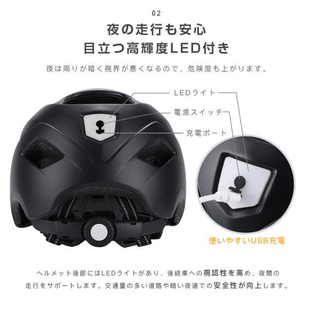 ヘルメット カジュアル バイク 丈夫な耐久性 サイズ調整バックル 装着簡単 LEDライト USB充電 大人用 サイクリング スクール用 自転車 高校生 軽量 通学 通勤 おしゃれ メンズ レディース 男女兼用 サイズ調整可能 軽量コンパクト 耐衝撃 通気性 街乗り