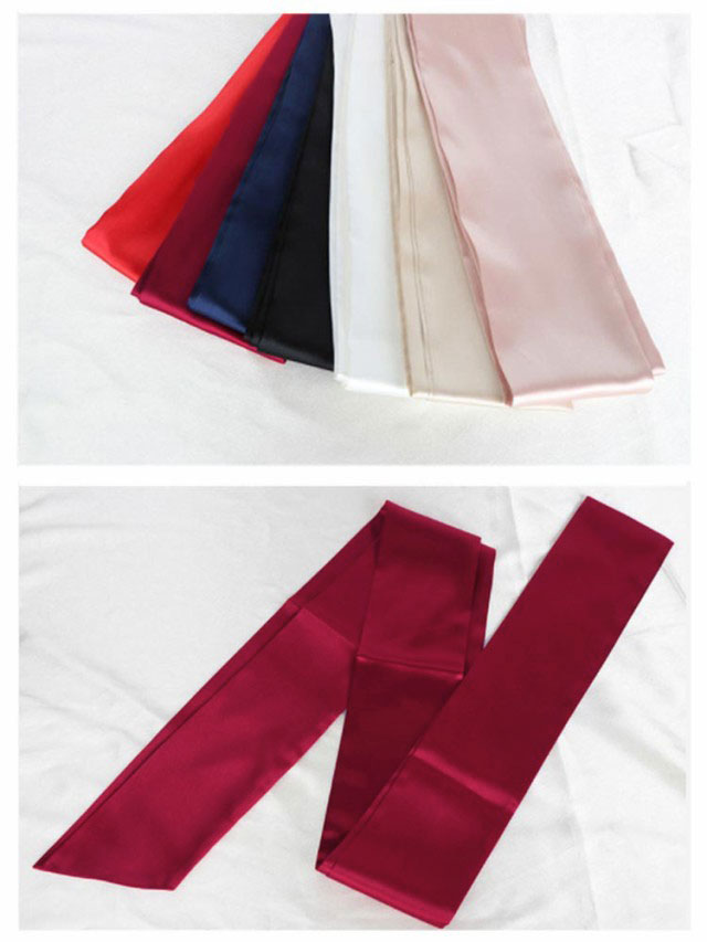 | 全7色 長250cm/幅9.2cm シンプルなサテンタッチのロングサッシュベルトサッシュリボン ウェディングドレスやカラードレスに合わせて、エレガントなスタイリングしてみて下さい ドレスのアレンジやリメイクやブライダル小物や海外挙式フォト撮影としても最適 ビジューやブローチ、コサージュなどでお好きにアレンジしてみてもおすすめ | |