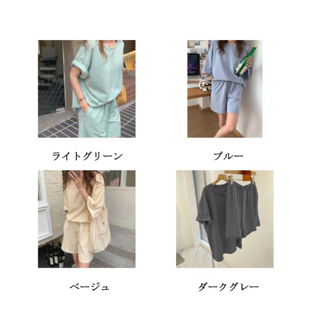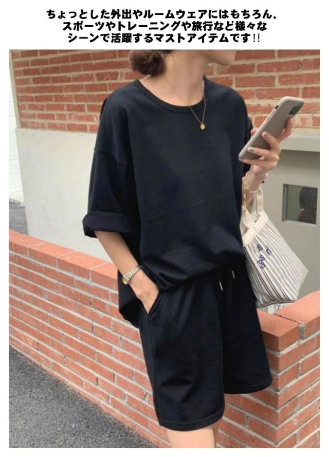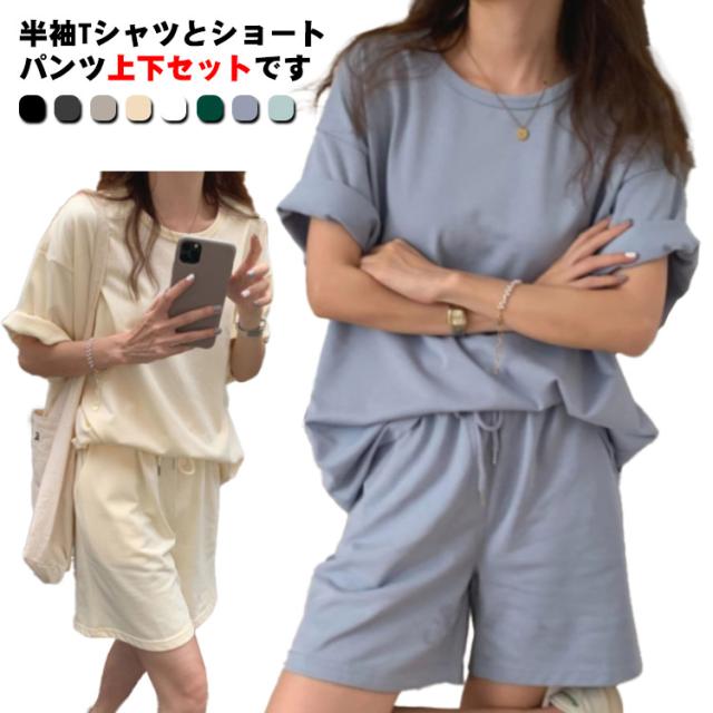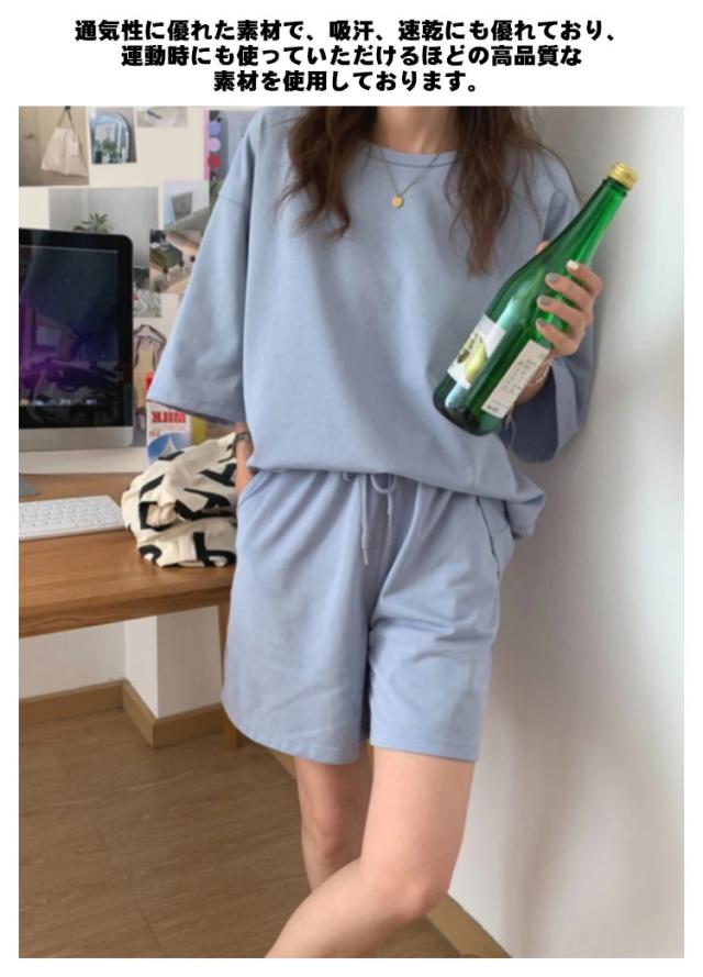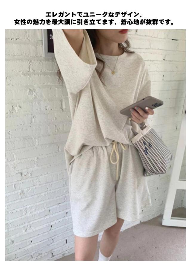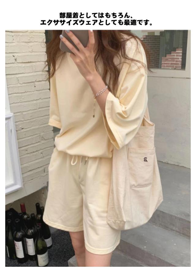 レディース スウェットセット 半袖Tシャツ パンツ 春夏 パジャマ セットアップ ルームウェア 上下セット カジュアル 短パン ショートパンツ ゆったり 着痩せ 部屋着 普段着 楽ちん