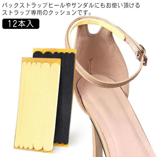 サンダル 12本入 靴ずれ防止 ストラップカバー 【送料無料】ストラップクッション クッション ブラック 靴擦れ 防止 かかと ヒール用 バックストラップ スポンジ 高反発 パンプス