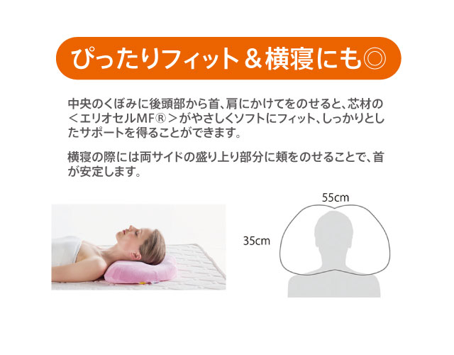 中央のくぼみで頭・首・肩周りをしっかりサポート。
