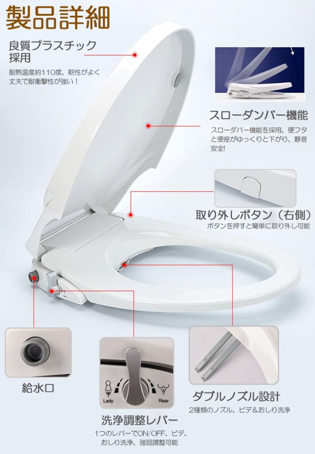 便座 交換 シャワートイレ 電源不要 O型 便座 洗浄便座 水洗浄便座 水圧式 非電源式 取り付け簡単 送料無料