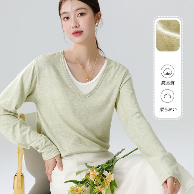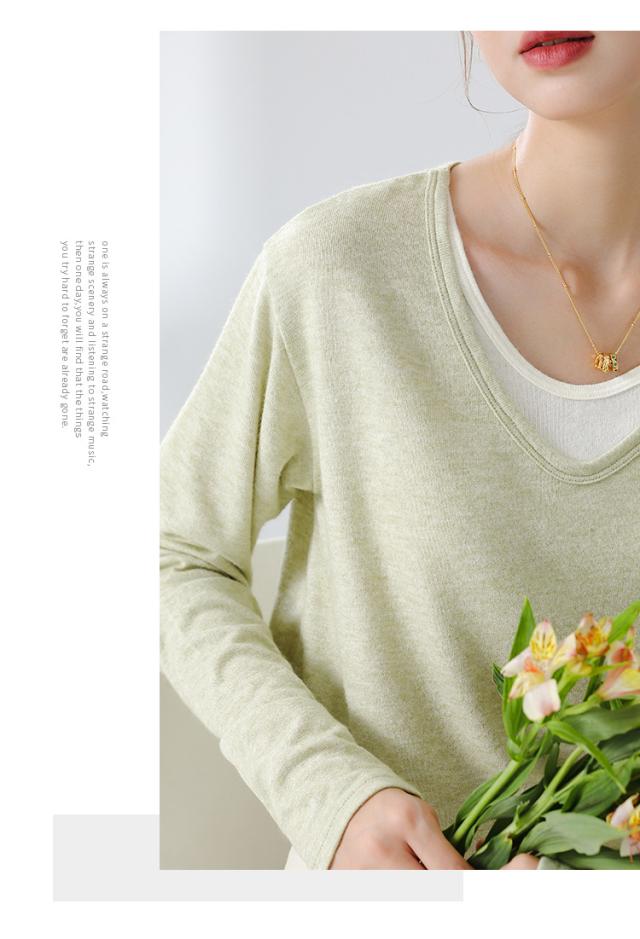 カットソー レディース vネック 体型カバー 長袖 インナー チュールトップス シアートップス 無地eh053zr