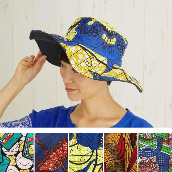 つばが広めでUV対策におすすめ!色彩豊かなアフリカンプリント柄が、お出かけ先やイベントでも目を惹きます。
