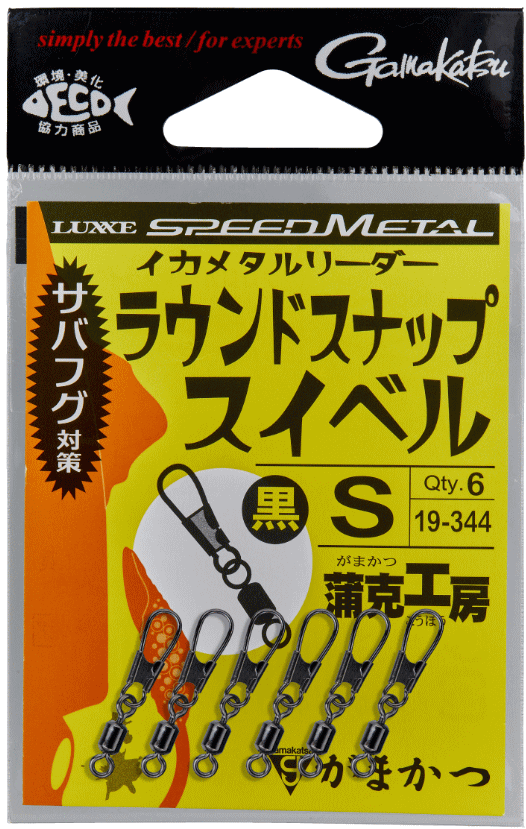 がまかつ イカメタルリーダー ラウンドスナップ スイベル NSB 黒 Sサイズ / メール便可