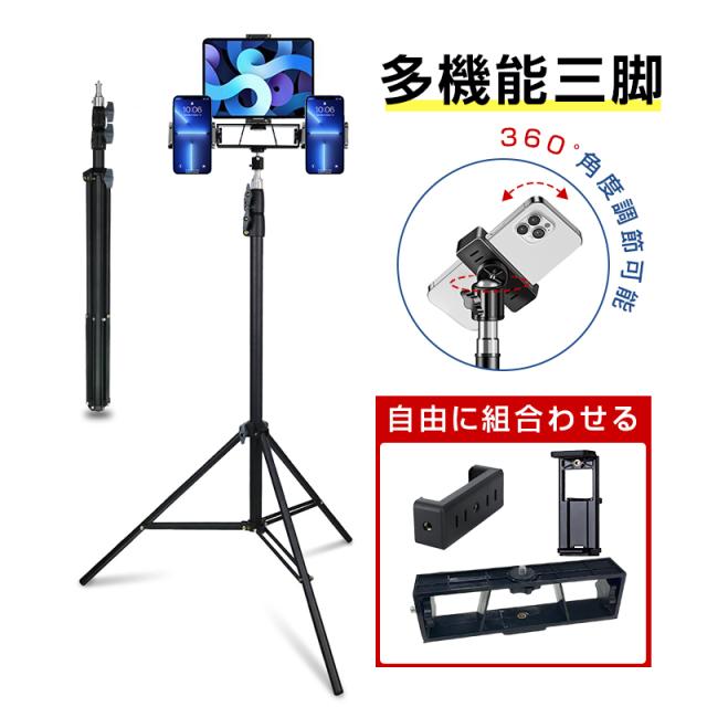 三脚 スマホスタンド ライブ 配信 最長2m タブレット対応 360度回転 スマホホルダー 収納袋付 角度調節 Vlog撮影 YouTuber tweet TIKTOK