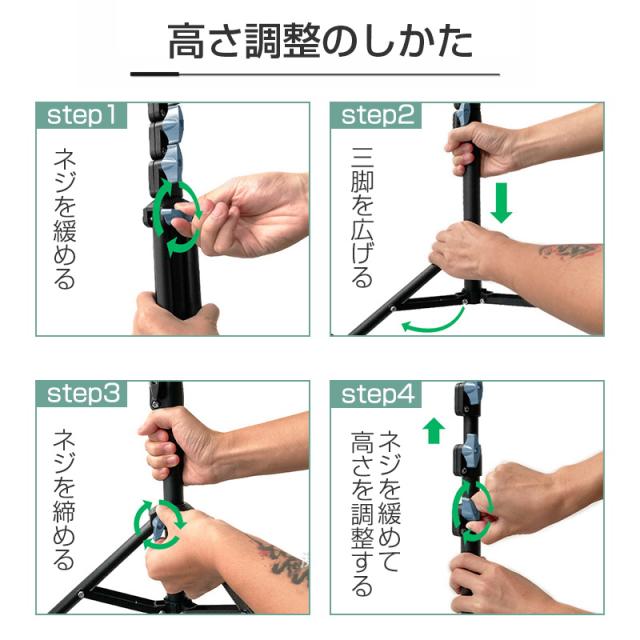 【三脚タイプ】三脚タイプのスマホスタンドは上下に高さ調整できる幅が広く、本格的なライブ配信ができます。立った状態の弾き語り演奏やダンス配信、スマホを遠くに配置させて大人数での配信も可能です。高さを調整する棒部分に取り付けられる一眼レフなどを装着すれば、さらに便利な使い方ができます。