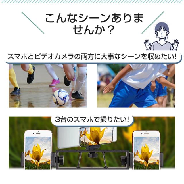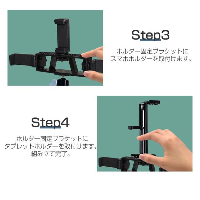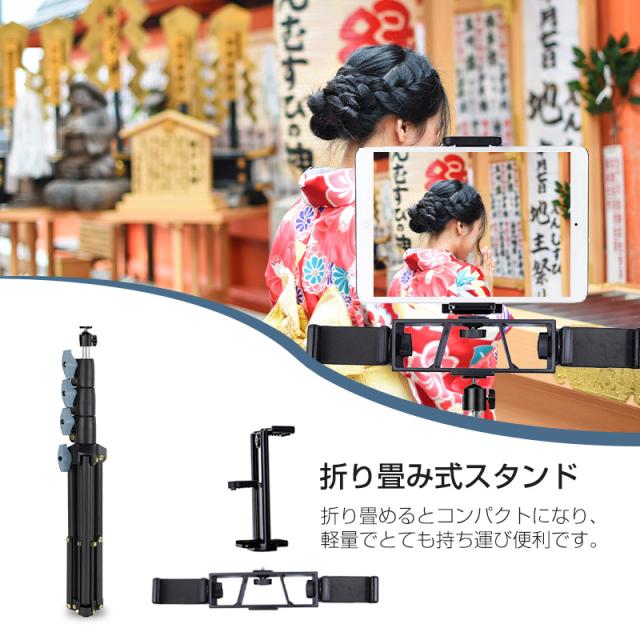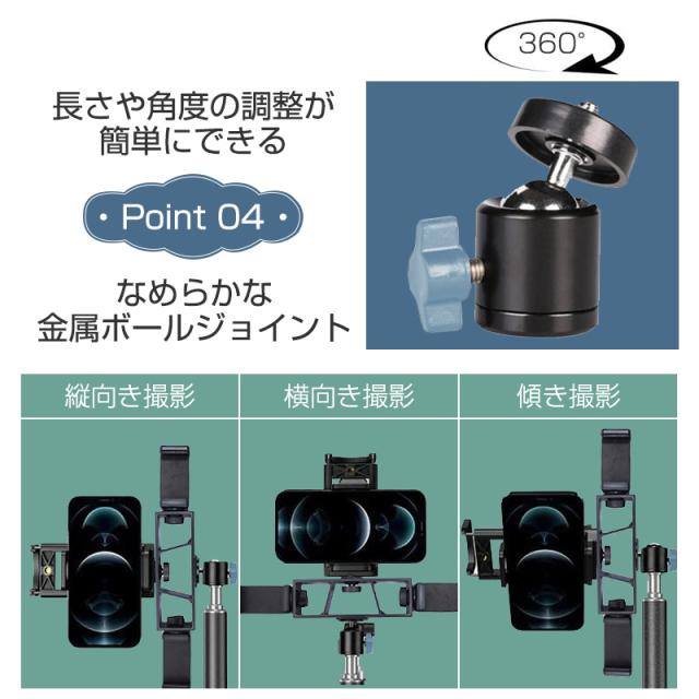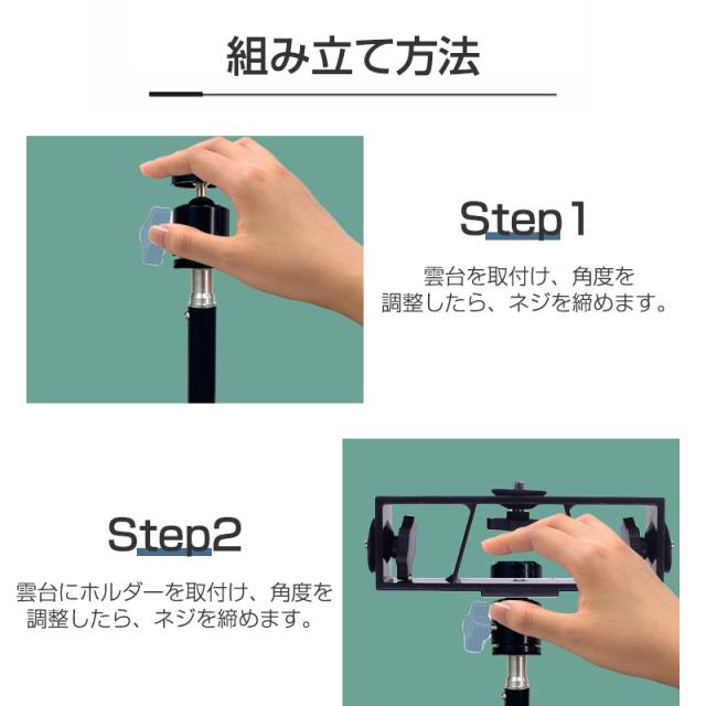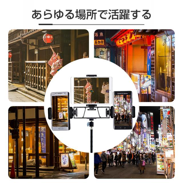 【スマホ・タブレット両用】三つの組み立てホルダーと1/4インチネジが付属、さまざまなサイズのデバイスの利用に対応し、多岐にわたって活躍します。スマホやタブレットはもちろん、接続パーツを交換すれば、Webカメラやマイクのスタンドとしても使えます。