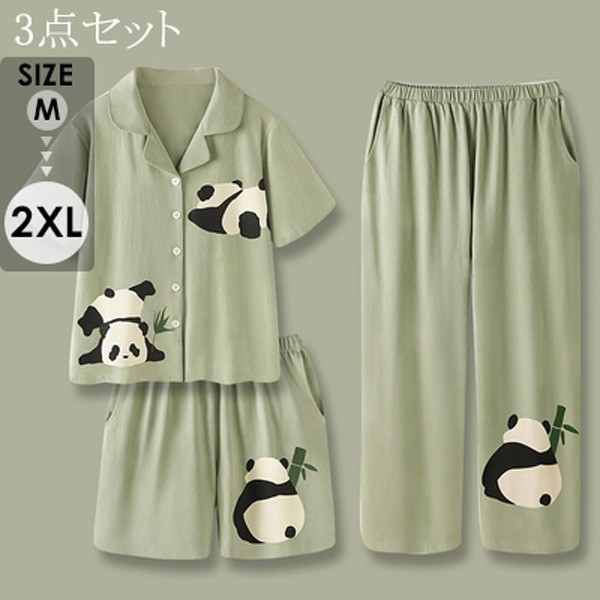 【レビュー投稿で+5%還元】ルームウェア 大人可愛い パンダ パンダ柄 3点セット ルームウエア 夏 寝間着 ロングパンツ パジャマ ナイトウェア 上下セット セットアップ 寝巻 コットン リラックスウェア プレゼント ギフト パンツ M L 2L 3L