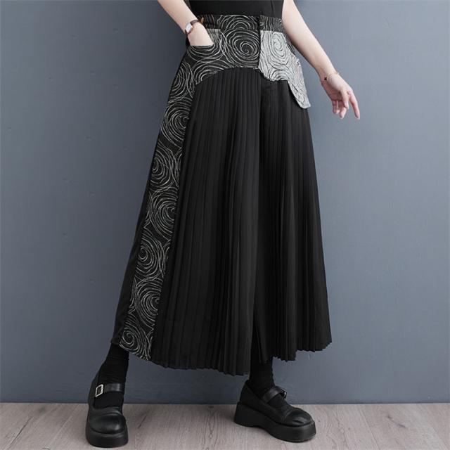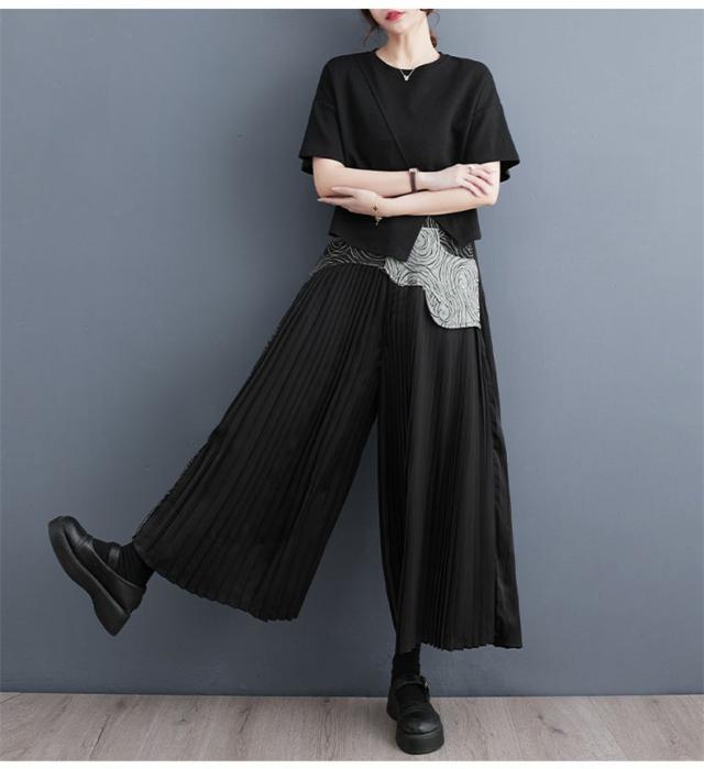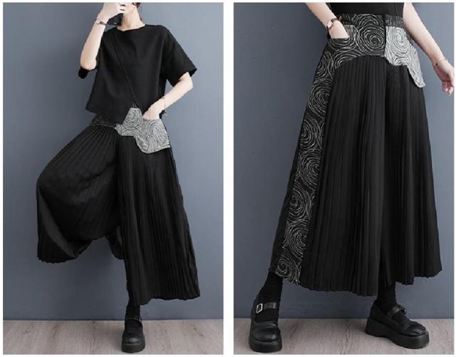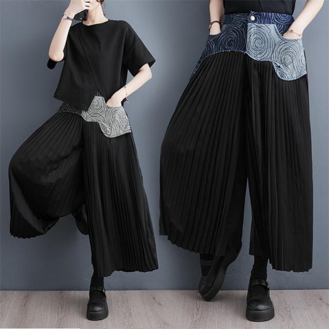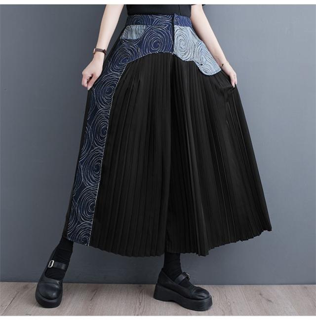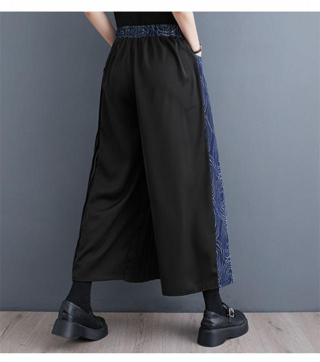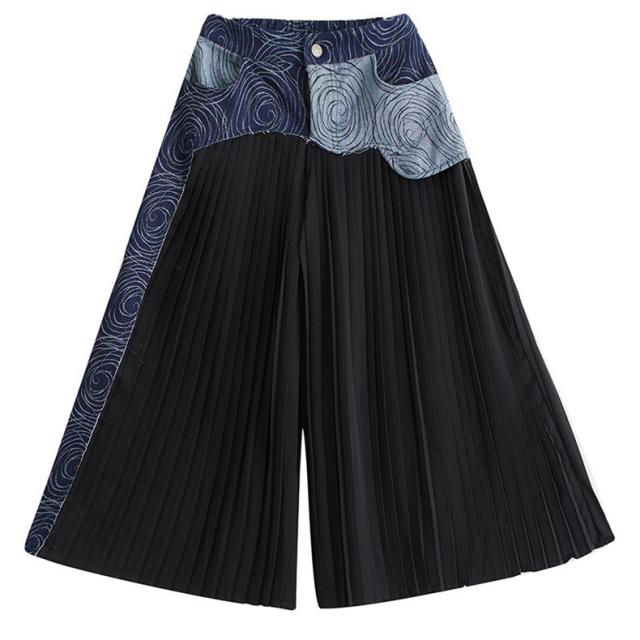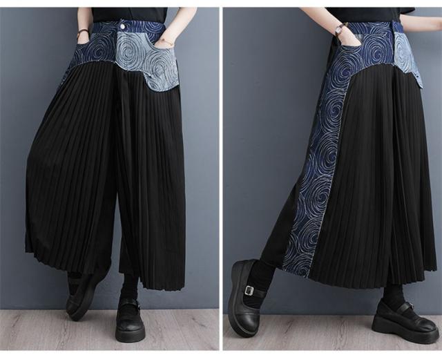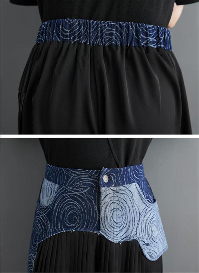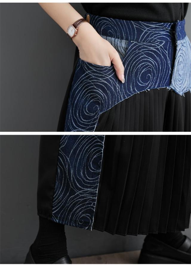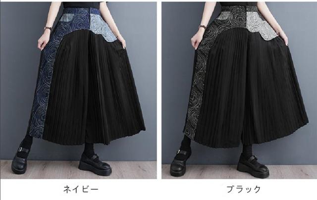 春夏パンツ レディース ボトムス プリーツ ワイドパンツ 異素材 デニム 切り替え スッキリデザイン 大人っぽく着こなせる 美脚パンツ