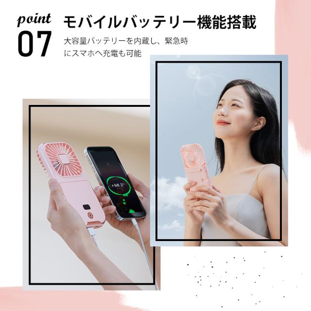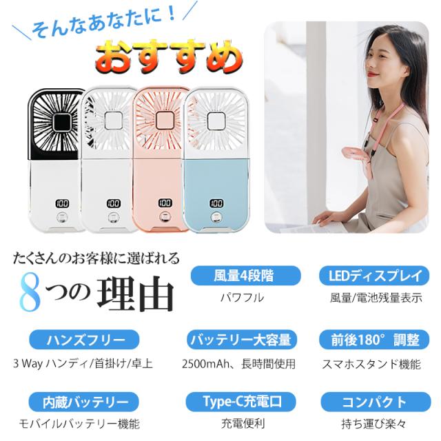 【モバイルバッテリー付】 携帯扇風機 ハンディ扇風機 首かけ扇風機 卓上扇風機 バッテリー 首掛け扇風機 折り畳み扇風機 静音 ハンディファン 長時間 スマホ充電器 ハンズフリー 首掛けファンクーラー スマホスタンド ポータブル