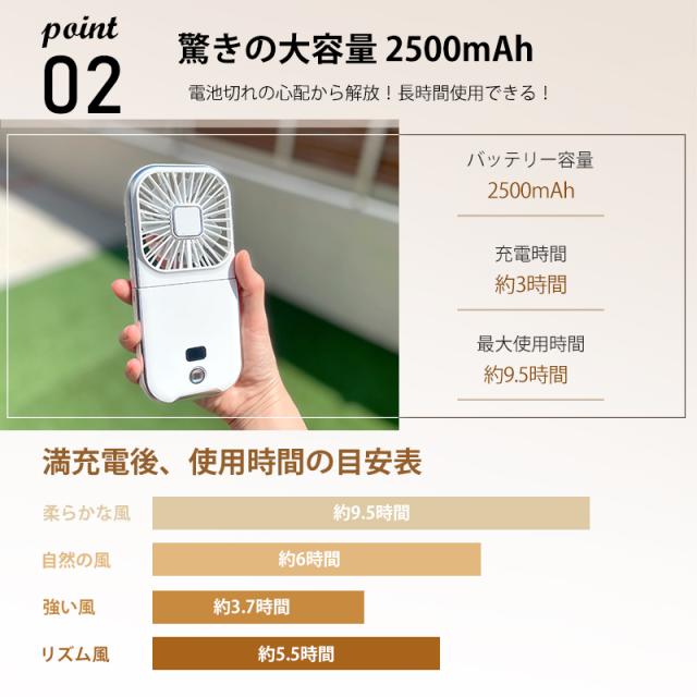 ハンディファン 持ち運びに便利 バッテリー内蔵 かわいい おしゃれ 携帯扇風機 静音 長持ち