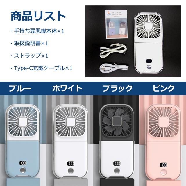 スマホ充電ができる!スマホスタンドになる!かゆいところに手が届く多機能ハンディファン・扇風機本体に付いたストラップホールに紐やストラップを通して首から提げてハンディフリーに!