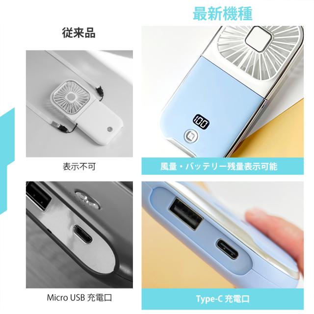 折りたたみ 首掛け扇風機 ハンズフリー 手持ち 小型扇風機 コンパクト 首かけ ハンディファン 持ち運びに便利 バッテリー内蔵 かわいい おしゃれ 携帯扇風機 静音 長持ち