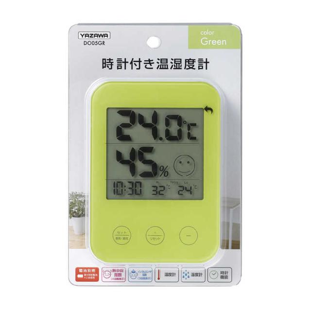 ヤザワ 熱中症・インフルエンザ警報付きデジタル温湿度計 グリーン [デジタル] DO05GR