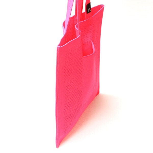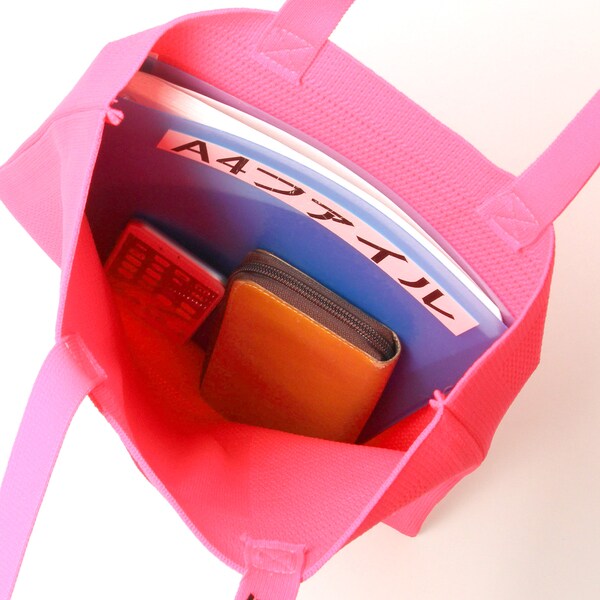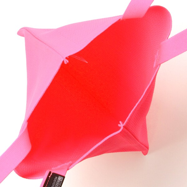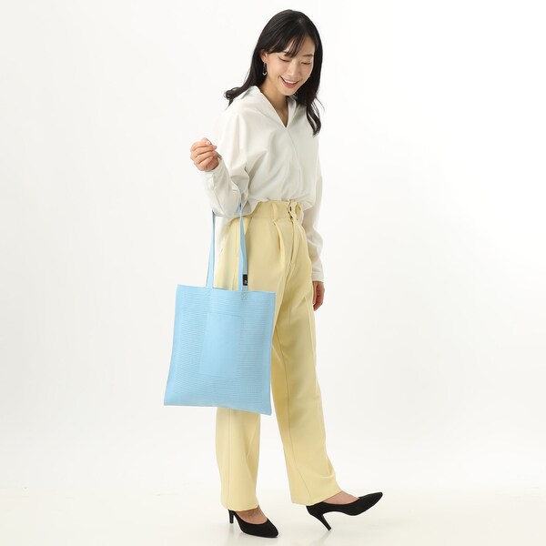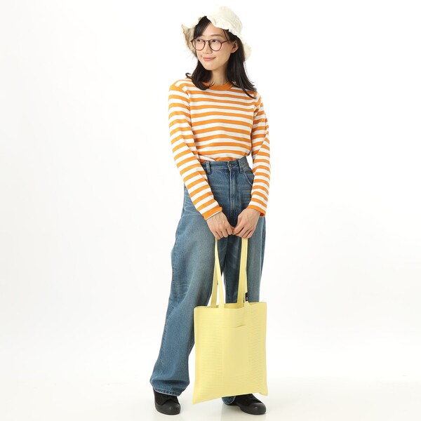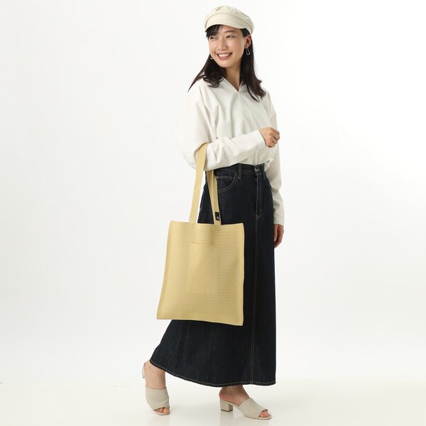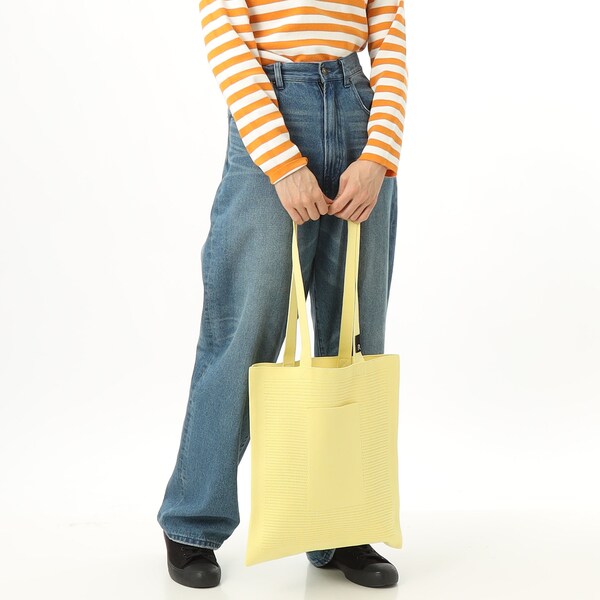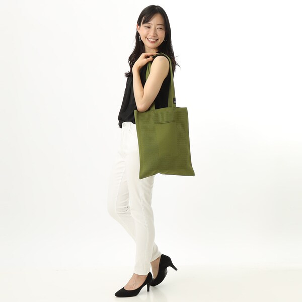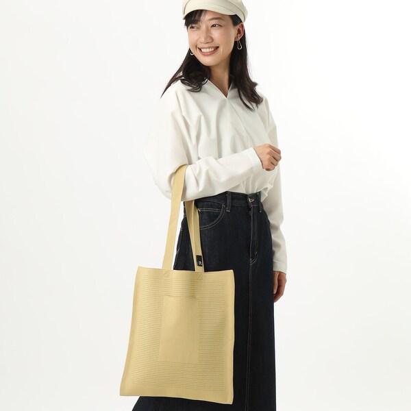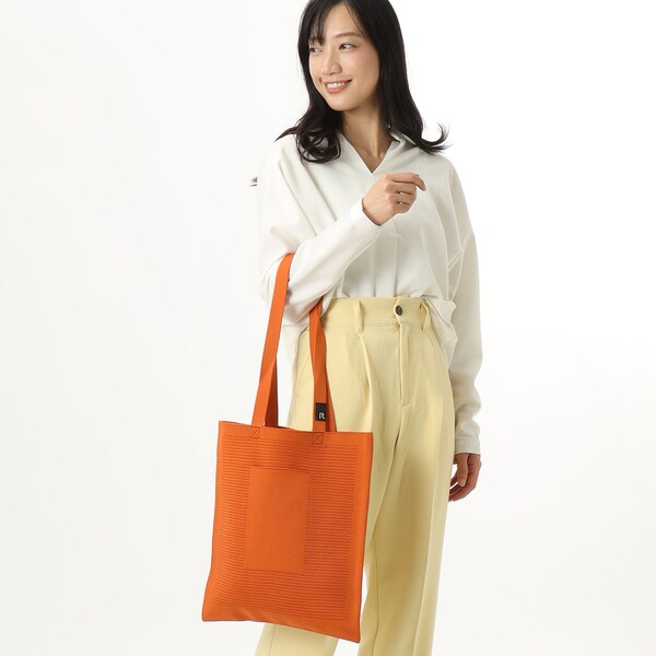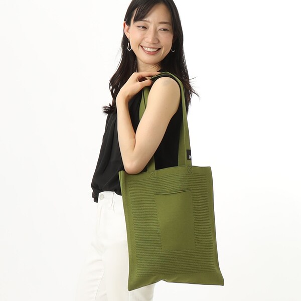 また、本体にはペットボトルからリサイクルした先染めの糸を使用。環境にもやさしいシリーズです。A4サイズでサブバッグとしても。