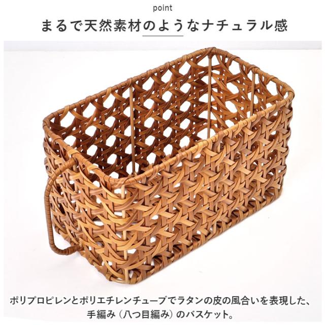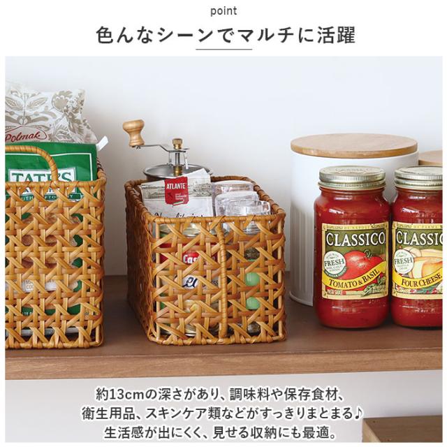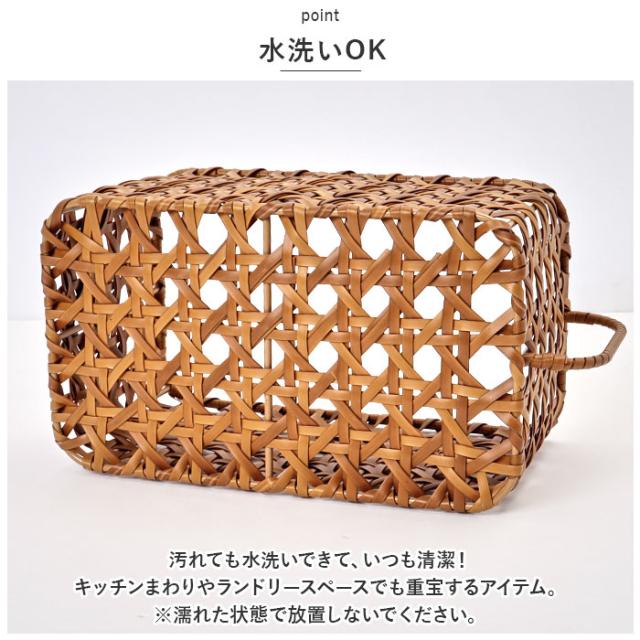 | 商品説明 | ・キッチングッズや小物の収納に♪UTILE Octa(ユティルオクタ)キッチンストッカーバスケットが新登場。 【まるで天然素材のようなナチュラル感】 ・ポリプロピレンとポリエチレンチューブでラタンの皮の風合いを表現した、手編み(八つ目編み)のバスケット。 【とっても丈夫】 ・枠組み部分にはアイアン素材を使用し、しっかりとしたつくりに。 【水洗いOK】 ・汚れても水洗いできて、いつも清潔!キッチンまわりやランドリースペースでも重宝するアイテム。(※濡れた状態で放置しないでください。) 【色んなシーンでマルチに活躍】 ・約13cmの深さがあり、調味料や保存食材、衛生用品、スキンケア類などがすっきりまとまる♪生活感が出にくく、見せる収納にも最適。 【便利な取っ手付き】 ・高い場所に置いても取り出しラクラク。 |