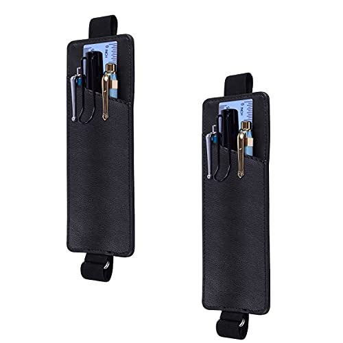 ペンケース スリム Wisdompro 筆箱 PUレザー ペンホルター ペンポーチ 手帳用 伸縮バンド付き A4/A5/B5対応可 2本入り ブラック