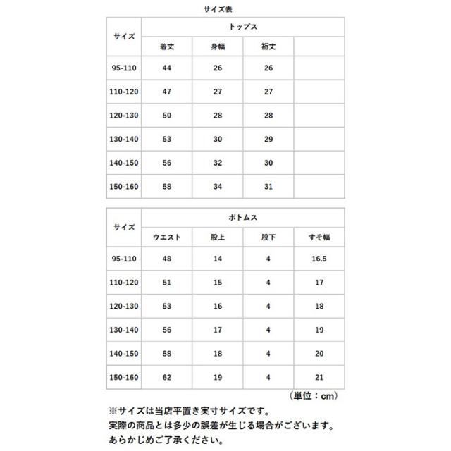 | サイズ | [ガールズ] ・95-110cm ・110-120cm ・120-130cm ・130-140cm ・140-150cm ・150-160cm ※サイズについて詳細は、商品画像の中にあるサイズ表をご覧くださいませ。 |