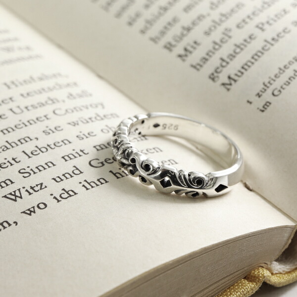 マジェスフィッセン アラベスク 甲丸 リング 1〜25号 指輪 シルバー925 シルバーリング さりげない 植物 蔦 ツタ 装飾 アンティーク風 ハード 細身
