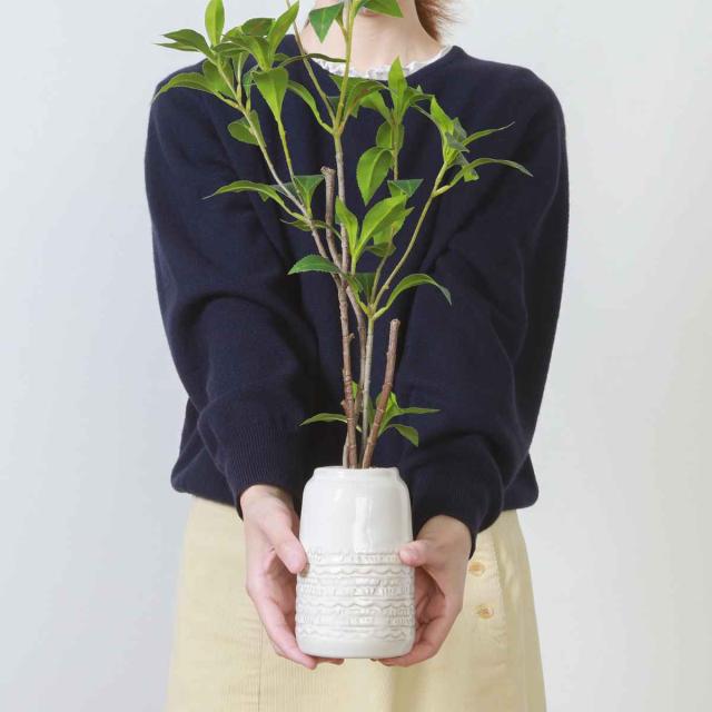 グリーンをやわらかく引き立てる丸みのあるホワイトポットはどんなインテリアとも相性抜群です。