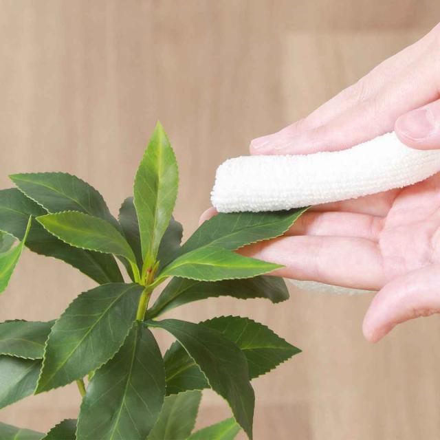 本物の植物は水やりや剪定などのお手入れが必要ですが、フェイクグリーンはどちらも必要がなく、いつでもイキイキした状態を簡単に保てます。時々乾いた柔らかいタオルなどでホコリを優しく払いとるだけの、簡単なお手入れのみです。