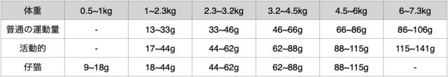 ・給与量は猫種、体質、生活環境、活動量、年齢、季節や気候などにより大きく違ってきます。上記給与目安量を目安として理想的な体重を維持できる最適な量に調整してください。