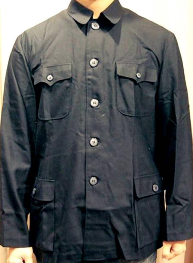 しわになりにくい高級コットン製中国人民服(中山服)・紺色