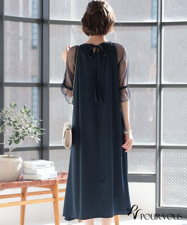 ドットレースラグランスリーブワンピース【614231222】20代・30代・40代・54代長袖・膝丈・セットアップ・スカート・体型カバー・ジャケット・テーラード・スーツ・大きいサイズなど・即日発送・送料無料結婚式・婚活・披露宴・顔合わせ・二次会・同窓会・お呼ばれ・食事会・謝恩会・親族・七五三・お宮参り・冠婚葬祭・弔事・女子会・デート・入学式・卒業式・入園式・卒園式・ママ・マタニティー・セレモニー・セレブ・パーティー