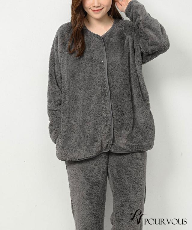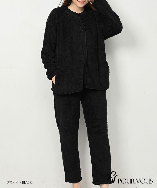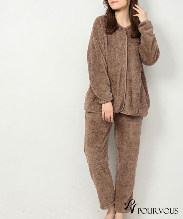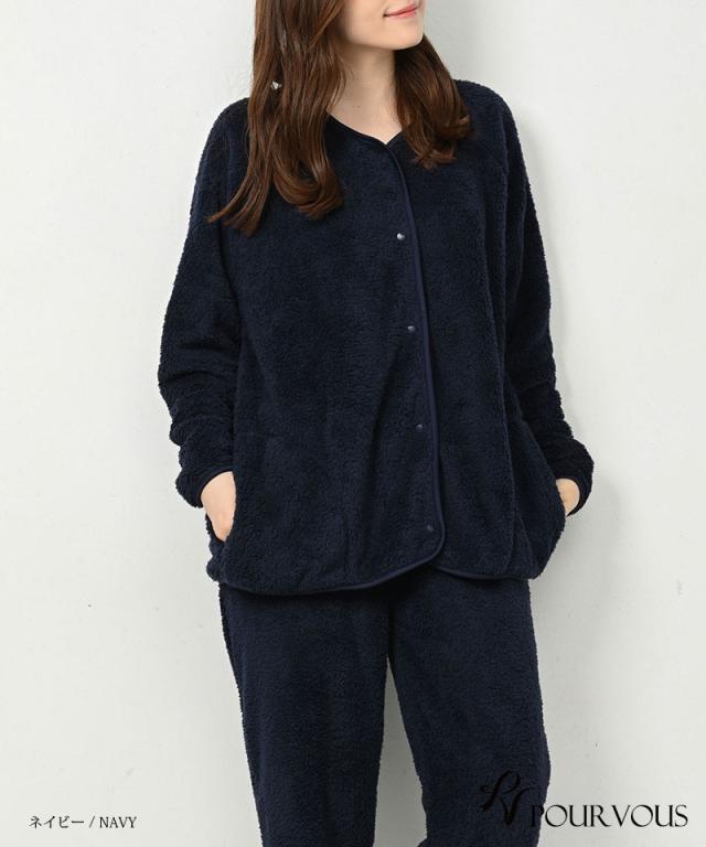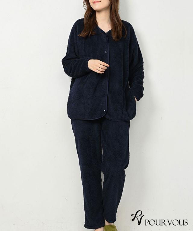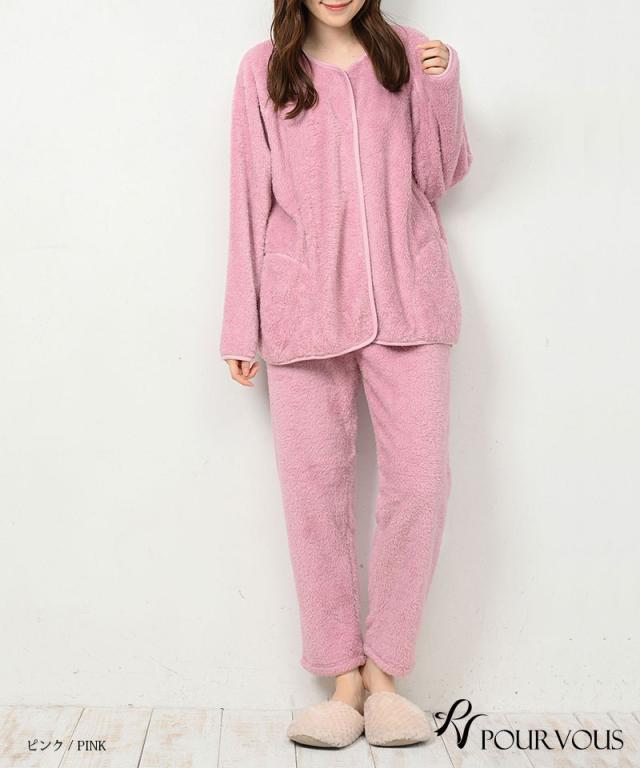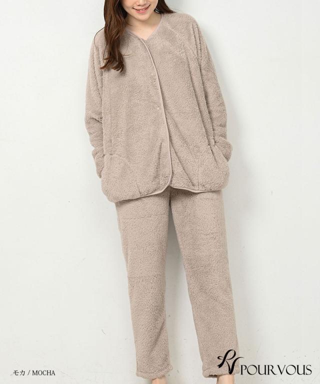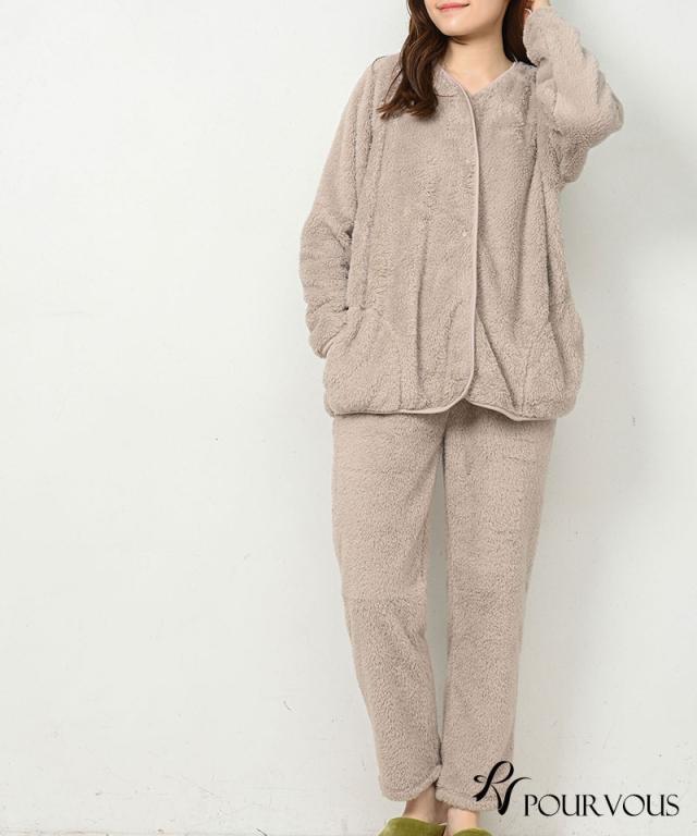 シープボア前釦アウターパンツ上下セット【641231219】 レディース ルームウェア ナイトウェア 部屋着 パンツ パジャマ セットアップ ワンピース 寝間着 上下セット 夏 春 S M L 20代 30代 40代 50代 3点セット 無地 キャミソール 長袖 ウエストゴム 大きいサイズ