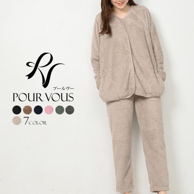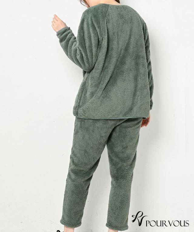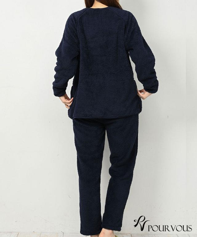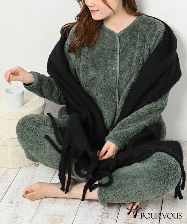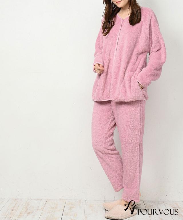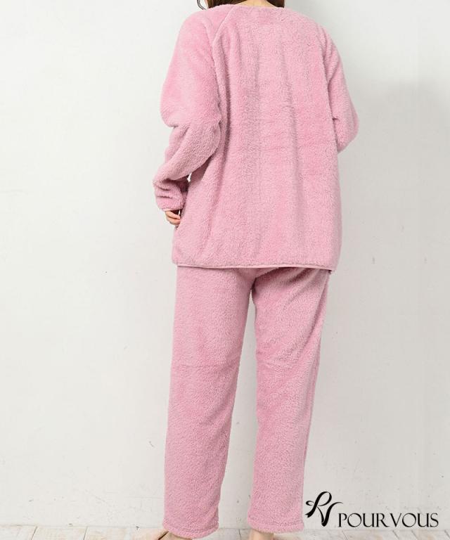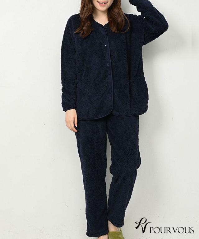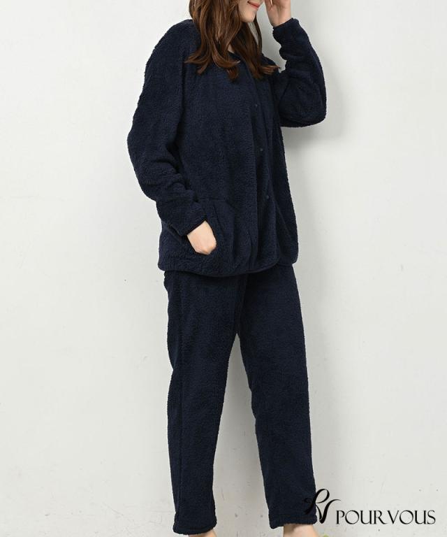 シープボア前釦アウターパンツ上下セット【641231219】 レディース ルームウェア ナイトウェア 部屋着 パンツ パジャマ セットアップ ワンピース 寝間着 上下セット 夏 春 S M L 20代 30代 40代 50代 3点セット 無地 キャミソール 長袖 ウエストゴム 大きいサイズ