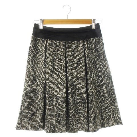 【中古】アンタイトル スカート フレア ひざ丈 ベルト 切替 サテン 薄手 アンティーク ビンテージ ペイズリー 1 黒