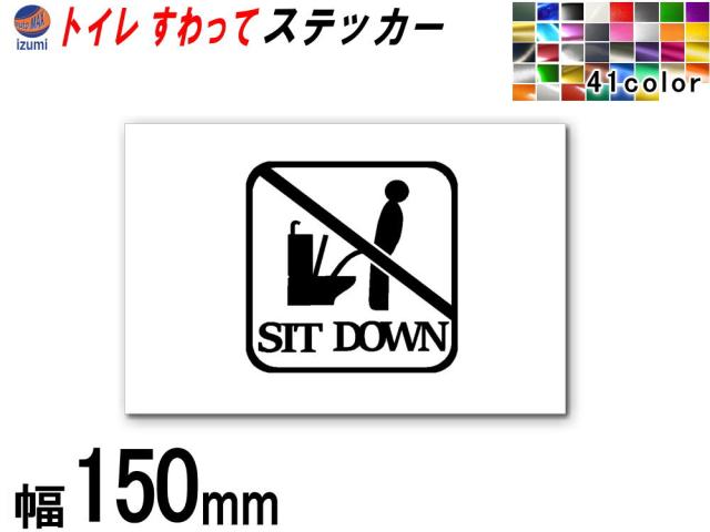 sticker5 (150mm) トイレ SIT DOWN ステッカー TOILET マナー 案内 表示 男性 飛び散り 防止 座って お願い