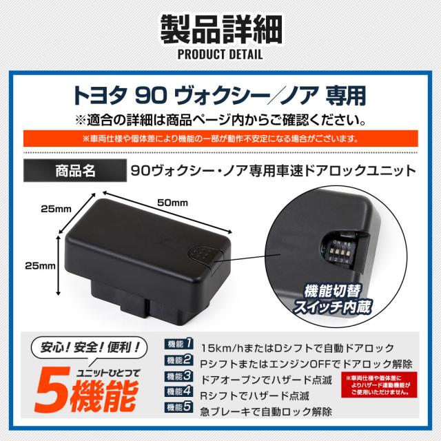 ヴォクシー ノア 90系 適合 OBD 車速ドアロック ユニット 90ヴォクシー 90ノア 簡単取付 カプラーオン オート 自動 ドアロック 車速 ハザード カスタム パーツ アクセサリー ドレスアップ