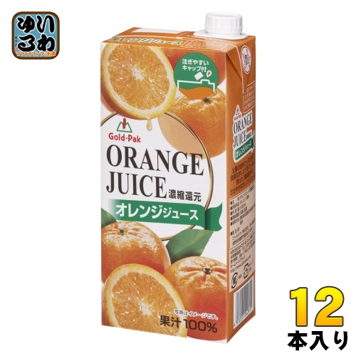 ゴールドパック オレンジジュース 1L 紙パック 12本 (6本入×2 まとめ買い) 果汁飲料 濃縮還元 果汁100%