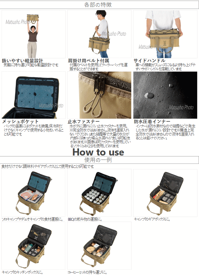 ![]() ソロキャンプで使いやすい。断熱材ぎっしりの15Lソフトクーラーバッグ。 ソロキャンプで使いやすい浅型ソフトクーラーです。 350ml缶を保冷しながら収納できる高さ設計。 ![]() ![]() ![]() ![]() ![]() ![]() |