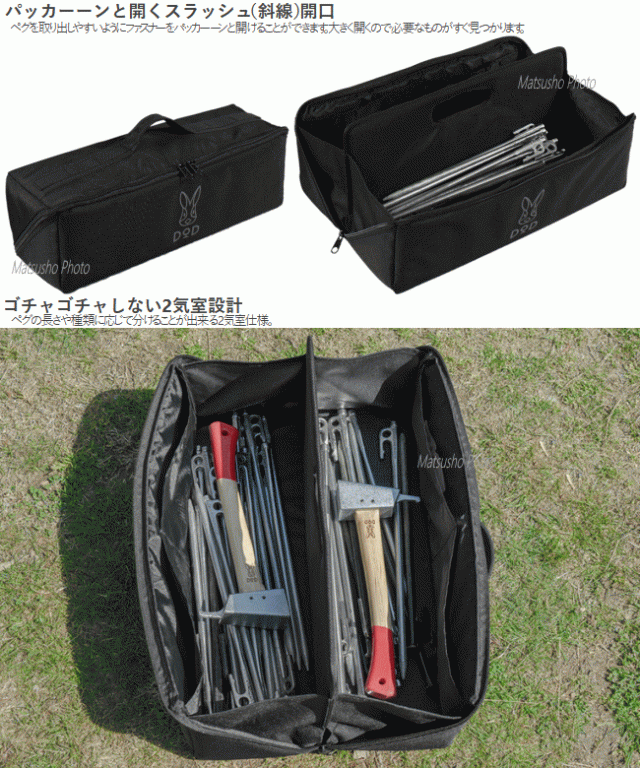 DOD バッグ ペグバッグ ペグケース 収納バッグ ペグ ハンマー ロープ 道具一式 2気室設計 アウトドア キャンプ スラッシュペグパッカーーン(40)BG1-964-BK ブラック