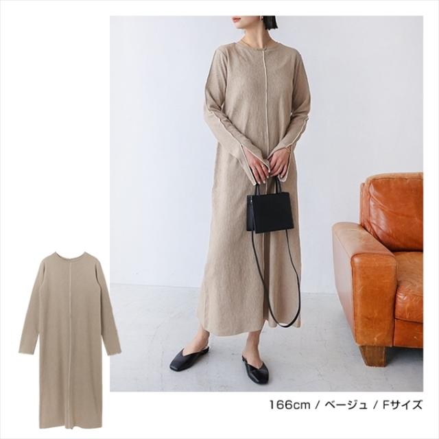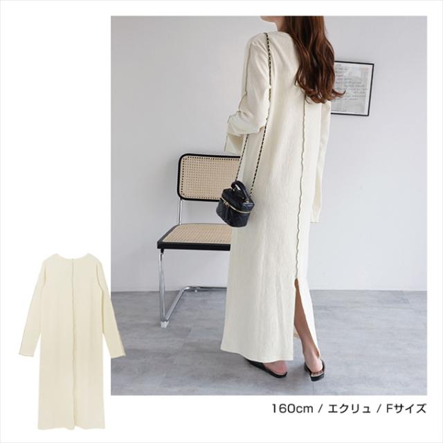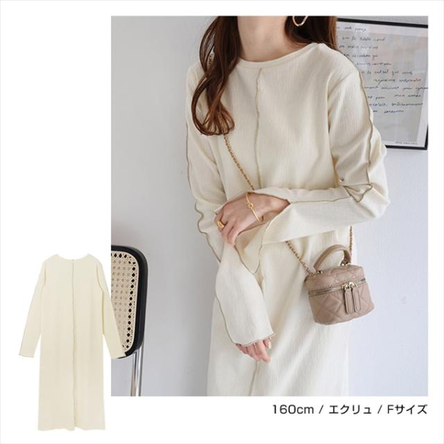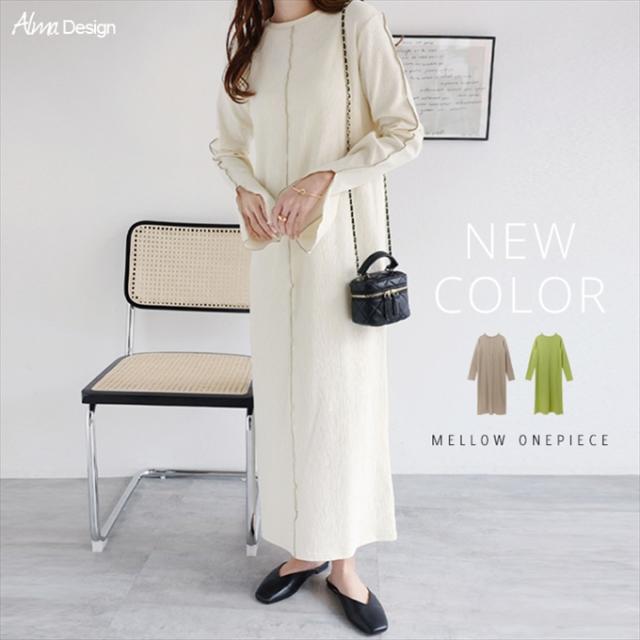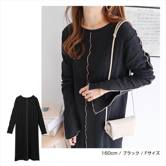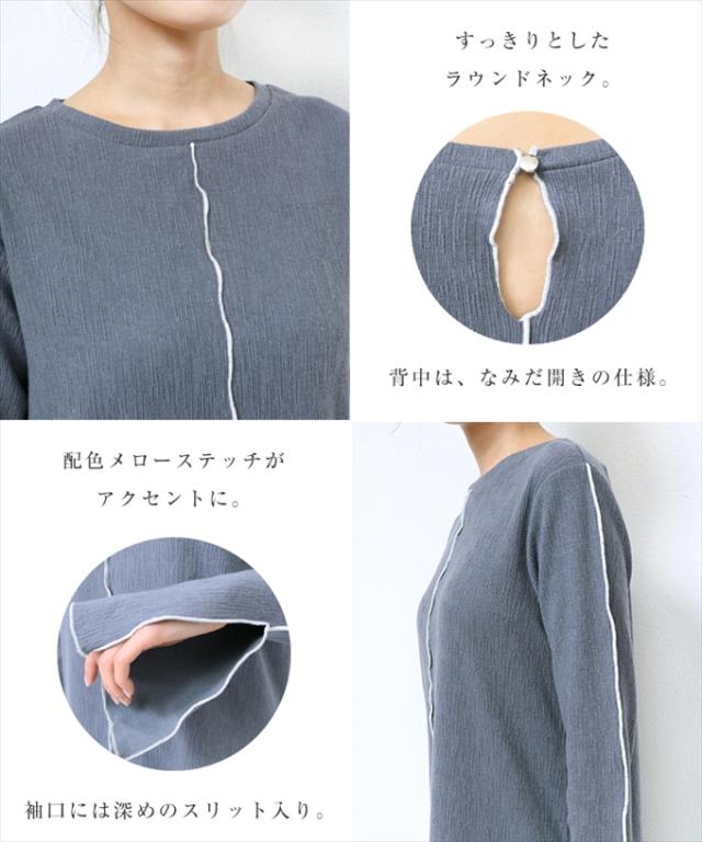 配色メローが着映える!新作カットソー・ワンピースが新登場です。表面にほんのり凹凸がある、くしゅっとした質感の楊柳(ようりゅう)素材を採用。伸縮性があり、ふんわり軽い着用感もポイントです。配色メローステッチを施すことでアクセントをプラスしました。ネックラインは、やや横広がりな程よいラウンドネックですっきりと上品に。深めに入ったお袖のスリットもポイントです♪バックスリット入りで足さばきも◎程よくフィットしながらも、体のラインを拾いにくいサイズ感に仕上げました。サラッと着用するだけで簡単にスタイリングが決まる!シーズンの楽ちん&おしゃれitemです♪※裏地なし
