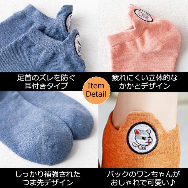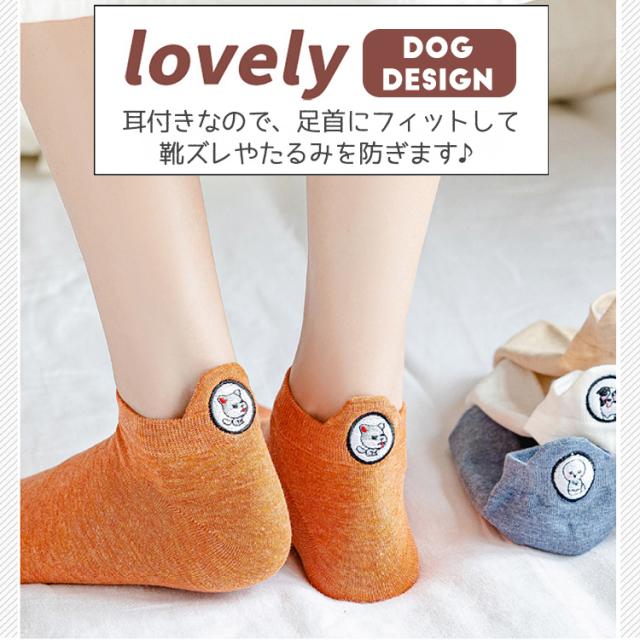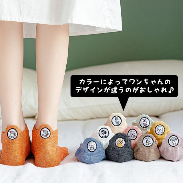靴下 レディース キャラクター おしゃれ くるぶし 犬柄 5足セット スニーカー ソックス くつした スニーカーソックス いぬ イヌ くつ下 セット ショートソックス ワンポイント 可愛い くるぶし丈 かわいい 春夏 無地