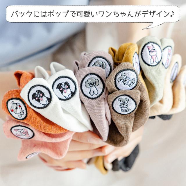 【ワンポイントのワンちゃんが可愛い♪ 犬柄 くるぶし丈ソックス 5足セット】